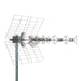 Antenna biconica di banda UHF con connettore F e riflettore a griglia.